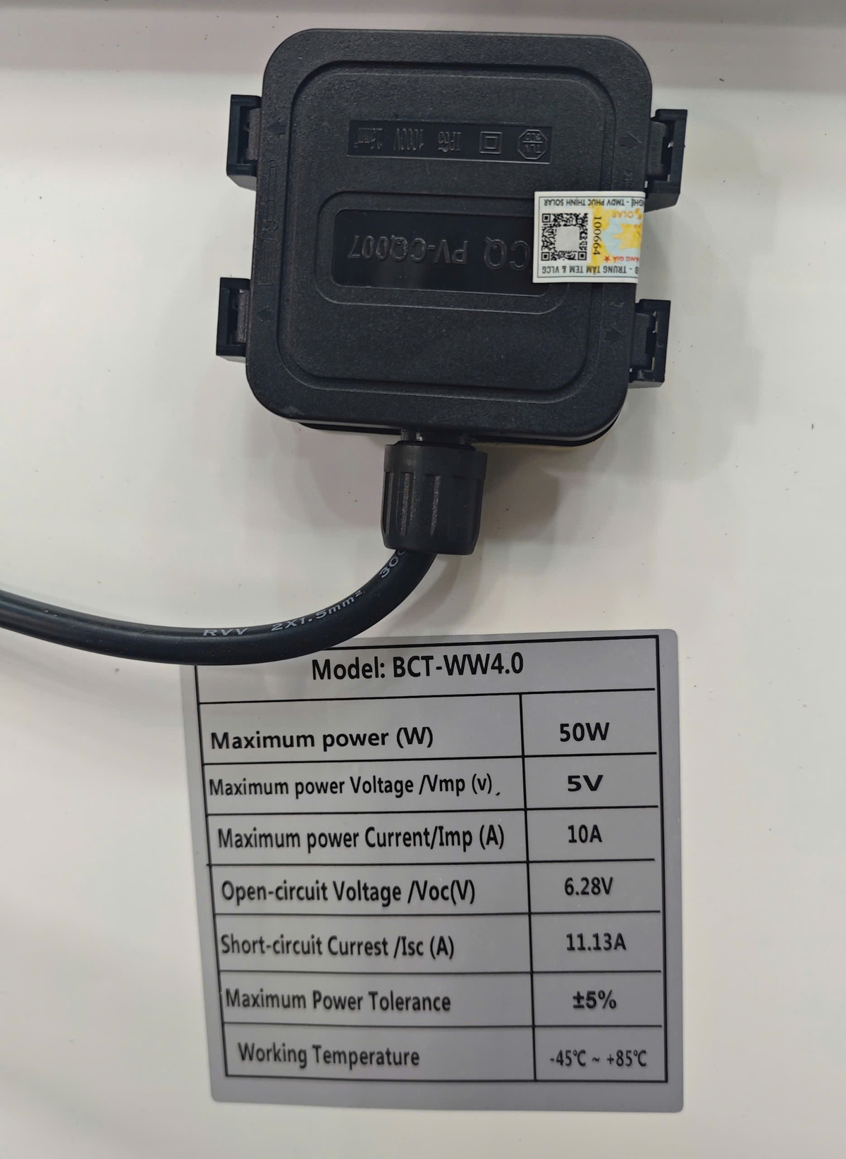 Khi đã kết nối dây dẫn lại với nhau, vào ban ngày tấm pin sẽ bắt đầu sạc cho đèn. Trên đèn sẽ có 1 chip led báo sạc nhấp nháy (khi đèn bật sáng chip led này sẽ không sáng). Tấm pin sẽ hấp thụ bức xạ từ ánh nắng mặt trời, tạo ra năng lượng và lưu trữ vào pin bên trong, cung cấp cho đèn hoạt động.