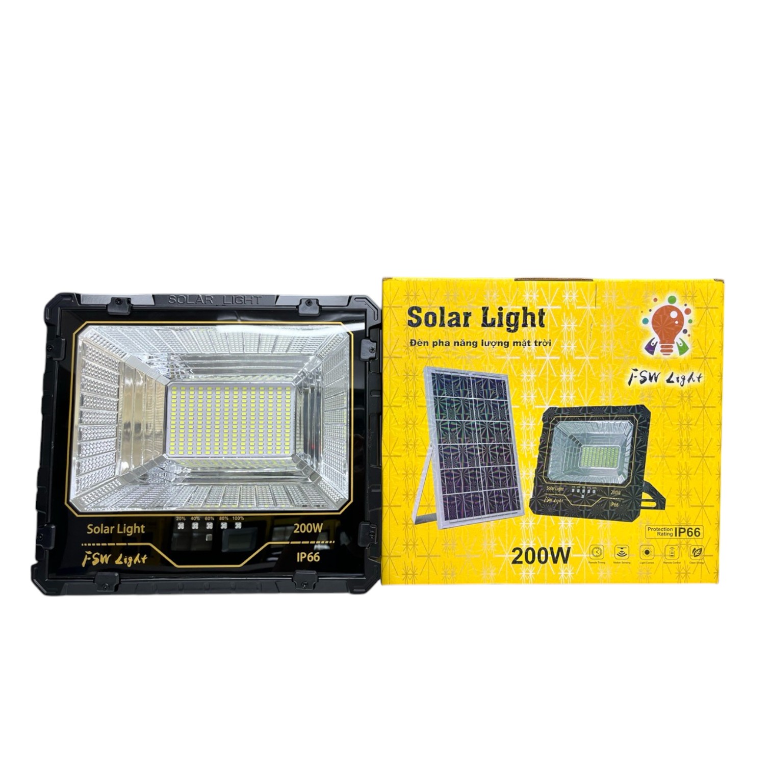 Đèn Pha Năng Lượng Mặt Trời 4 Ô FSW 100W – Chiếu Sáng Hiệu Quả Với 3 Chế Độ Ánh Sáng